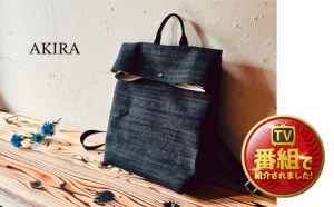 【AKIRAオリジナル】シンプルリュック 黒帆布×茶色帆布