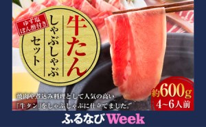 【ふるなびWEEK対象】牛たんしゃぶしゃぶセット 約600g(ゆず塩ぽん酢付き)