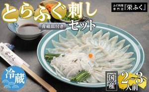 ふぐ料理専門店 『栄ふく』 国産 とらふぐ刺しセット(2~3人前)青磁皿27cm付