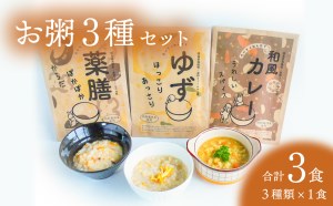 お粥 3種 計3食 おかゆ 米 特別栽培米 ゆず 薬膳 和風カレー レトルト 簡単調理