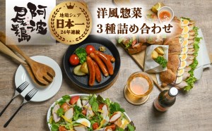 生産量日本一の地鶏「阿波尾鶏」を用いた3種の洋風惣菜を詰め合わせにしてお届けいたします。