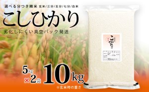 こしひかり 玄米時重量 5kg×2袋 10kg 分づき米 対応可 真空パック