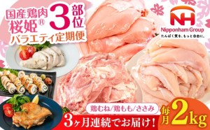 【1カ月目】桜姫(R) 鶏むね 2kg 【2カ月目】桜姫(R) 鶏もも 2kg 【3カ月目】桜姫(R) ささみ 2kg