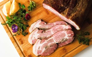 肉の甘みと旨味を最大限に生かすため、じっくりと2週間かけてベーコンにしました。