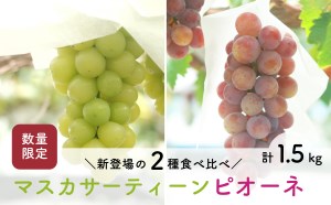 柏井農園から、人気のぶどう「マスカサーティーン」と「ピオーネ」をセットにした、数量限定の食べ比べ詰め合わせをお届けします。合計約1.5kgのボリュームで、ご家庭用はもちろん贈答用にもおすすめです。