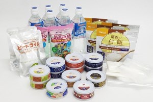 7大アレルゲン(えび、かに、小麦、そば、卵、乳、落花生)不使用のグルメ缶詰、アルファ化米、飲料水を発熱材とトイレ付きのセットにし、「食料」「飲料」「排泄」までを一連で賄えるパッケージとなっています。