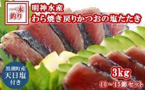 FN-4 明神水産 わら焼き 戻り かつお の 塩 たたき 3kg(10~15節) セット [115