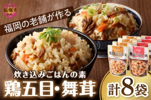 鶏肉、ごぼう、にんじん、たけのこ、しいたけの5種類の具が入った食べ応えのある『鶏五目ごはんの素』と、舞茸を使用した風味豊かな『舞茸ごはんの素』。2種類をお届けいたします!🐓🥕🍄🍚