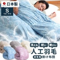 福岡県産 人工 羽毛 掛け布団 シングルロング (ピンク柄/ブルー柄/アイボリー/サンドベージュ/ミ