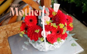 「母の日ギフト」八女のお花を使ったカゴアレンジメント(赤系)<配送不可:北海道・沖縄・離島>