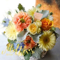 「母の日ギフト」八女のお花を使ったラウンドアレンジメント(オレンジ)<配送不可:北海道・沖縄・離島>