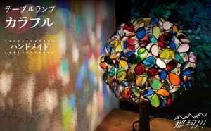 華やかな色合いは反映も含め複雑に交差し、どの角度から見ても永く楽しめるテーブルランプです。