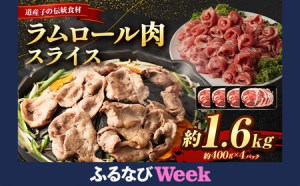 【ふるなびWEEK対象】ラムロール肉スライス 1.6kg(400g×4p入り)