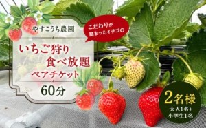 いちご狩り 食べ放題ペアチケット60分(大人1名+小学生1名)