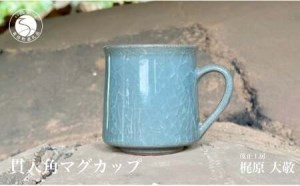 青い釉薬と額縁のような形が美しい銘品。