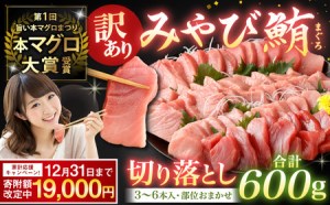 【期間限定!寄附額改定中】訳あり みやび鮪 規格外切り落とし 部位おまかせ 計600g