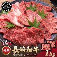 【1回目】訳あり!【A4~A5】長崎和牛焼肉切り落とし(肩ロース・バラ)1kg(500g×2P)
