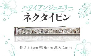 このネクタイピンは、ハワイアンフラワーや波のような模様が施されており、エレガントでありながら存在感を放ちます。