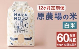 【12ヶ月定期便】原農場の米(白米) 5kg 計60kg