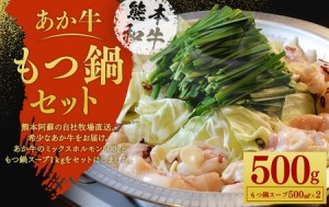 あか牛 もつ鍋 セット(あか牛ミックスホルモン500g、もつ鍋スープ500ml×2)