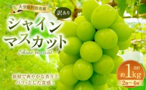 【2025年度分先行予約】【数量限定】規格外 訳あり シャインマスカット 約1kg 2~4房