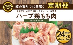 【12ヶ月定期便】大分県産 ハーブ鶏 もも肉 2kg×12回 24kg