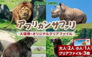 • アフリカンサファリ入園券とオリジナルクリアファイルのセット(入園券(大人2枚・小人1枚)