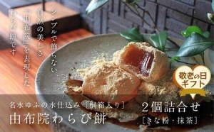 【敬老の日】名水ゆふの水仕込み 由布院わらび餅2個詰め合わせ(桐箱ギフト用包装)(きな粉1、抹茶1)