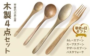 【敬老の日】<湯布院・カトラリー専門 甲斐のぶお工房>木製 スプーン・フォーク 4点セット