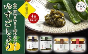 4種のゆずごしょうをセットでお届けいたします。色々お楽しみいただける食べ比べセットです。