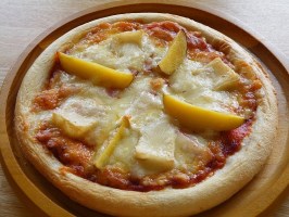 2010年、十勝の素材を活かした具だくさんピザを発売。専用オーブンがなく、焼き上げが難しく一日中「まだかー」「中が焼けていないー」と大変だった日もありました。しかし、女性スタッフの提案で三種類へと仕上げ、専用オーブンを導入。今では店舗の看板メニューとして定着し、ふるさと納税の返礼品にも選ばれています。1) ラクレットとインカのめざめ 2) カマンベールとインカのめざめ 3) 赤いルバーブと緑の枝豆。十勝産素材の逸品で、アレルゲンは小麦・乳。地域の生産者とともに生み出す味を、ぜひご家庭でお楽しみください。