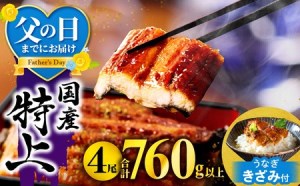 【宮崎県宮崎市】九州産うなぎ蒲焼4尾(計760g以上&さんしょう、たれ付き)