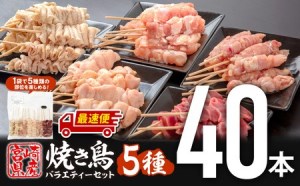 【宮崎県宮崎市】【最速便】宮崎県産若鶏 焼き鳥5種(40本) バラエティーセット