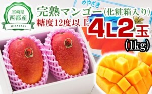 【先行予約】糖度12度以上 西都産完熟マンゴー2玉 約1kg(JA西都)2026年発送