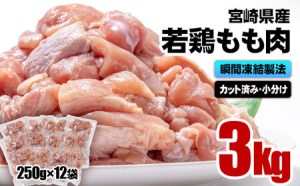 カット済・バラ凍結(IQF加工)宮崎県産若鶏もも250g×12P 計3kg 小分け