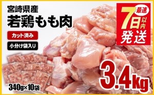 🚚7日以内で発送🚚カット済み!宮崎県産若鶏もも3.4㎏