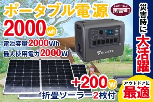 ポータブル電源2000W(電池容量2000Wh最大使用電力2000W)+200W折畳ソーラー2枚付