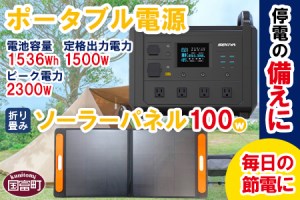 ポータブル電源(電池容量1536Wh 定格出力電力1500W ピーク電力2300W)+折り畳みソーラ