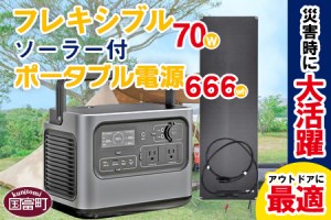 ポータブル電源(電池容量666Wh 定格出力電力700W ピーク電力1000W)+フレキシブルソーラーパネル70W