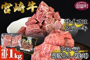 <宮崎牛サイコロステーキ & 宮崎牛トモバラ切落とし(焼肉)合計1.0kg>