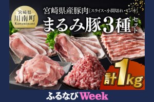 【ふるなびWEEK対象】宮崎県産 豚肉 「まるみ豚」 3種セット (スライス・小間切れ・ミンチ) 計