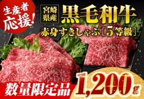 【令和7年9月発送】生産者応援!5等級宮崎県産和牛赤身(ウデまたはモモ)すきしゃぶ 1,200g