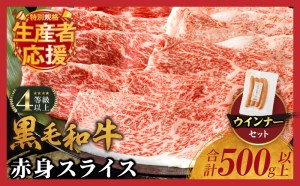【宮崎県都農町】『黒毛和牛赤身スライス&粗挽きウインナー(合計1.18kg)』🥩