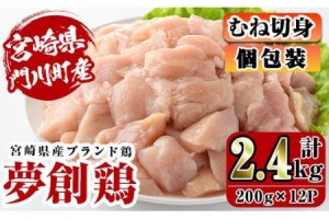 宮崎県産ブランド鶏「夢創鶏」むね切身(計2.4kg・200g×12P)