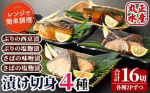 ぶりとさばの漬け切身食べ比べセット(4種・合計16切)