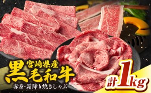 宮崎県産黒毛和牛赤身(ウデまたはモモ)・霜降り焼きしゃぶ1kg