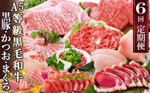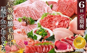 定期便(6回)A5等級黒毛和牛・黒豚・かつお・まぐろ FF-0058💙😊💙