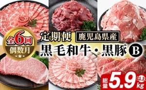<定期便・全6回(偶数月)>鹿児島県産 黒毛和牛・黒豚 定期便 B (総量5.9kg以上)