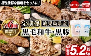 <定期便・全6回>岩塩付き!鹿児島県産黒毛和牛・黒豚定期便 (肉:総量約5.2kg/岩塩:600g)