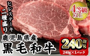 4等級以上鹿児島県産黒毛和牛ヒレステーキ2種盛り(計240g)